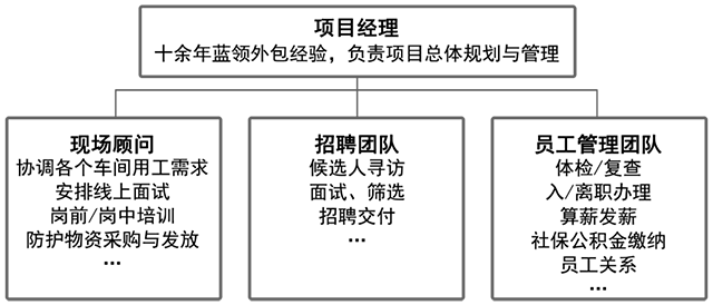 在招聘方面,迅速整合全国各地的劳务渠道和资源,从内蒙古、云贵川等劳动力输出大省调集蓝领工人。突出客户优势,比如颇有竞争力的薪资,与正式员工相同的福利等,消除候选人对外包模式的顾虑。