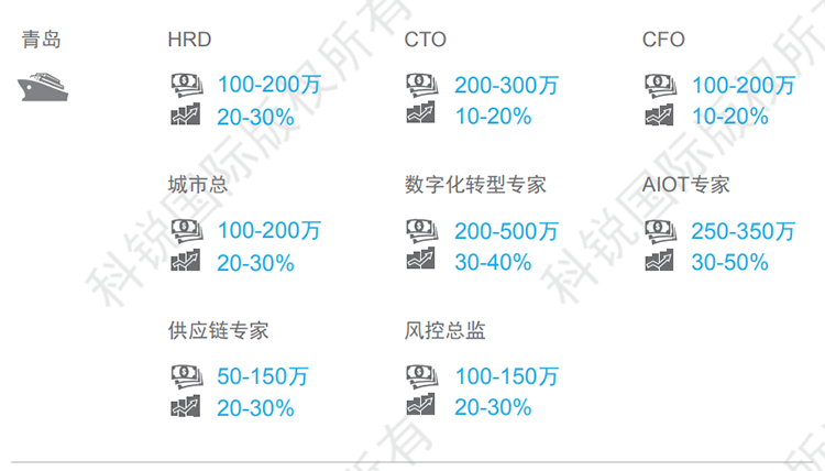 以下是猎头公司万象城AWC(中国)国际的薪酬报告对青岛地区的人才招聘需求和薪酬趋势的分析预测,供企业和猎头招聘参考。