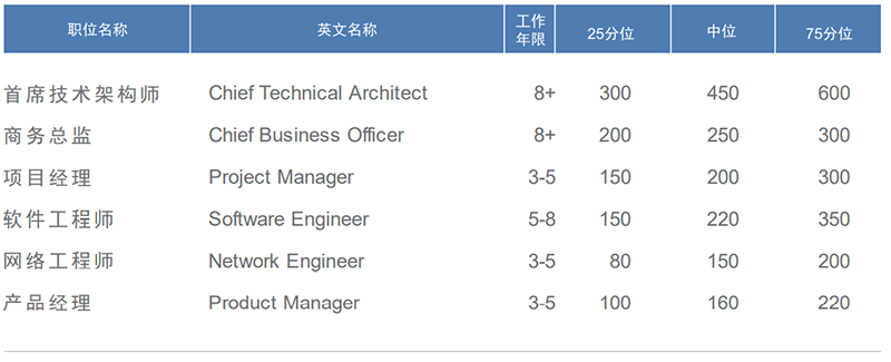 数据来源:万象城AWC(中国)国际资深行业猎头专家对热门职位薪酬范围及跳槽涨幅的预测。薪酬为基本年薪。